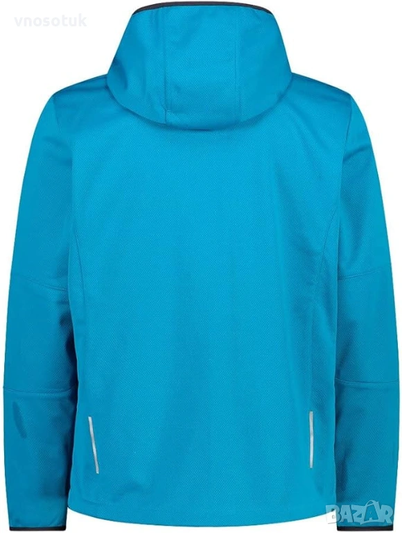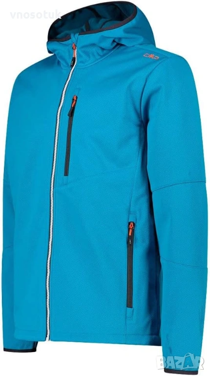 Мъжко софтшел яке с качулка, проектирано да ви предпазва от атмосферните условия, благодарение на трислойната си конструкция, която комбинира външния слой с мек и топъл полар. Регулируема качулка с връзки за закопчаване, преден цип с вътрешен капак, устойчив на вятър и надраскване, контрастна вътрешна подплата, два странични джоба с цип и връзка за стягане в подгъва за регулиране на прилягането