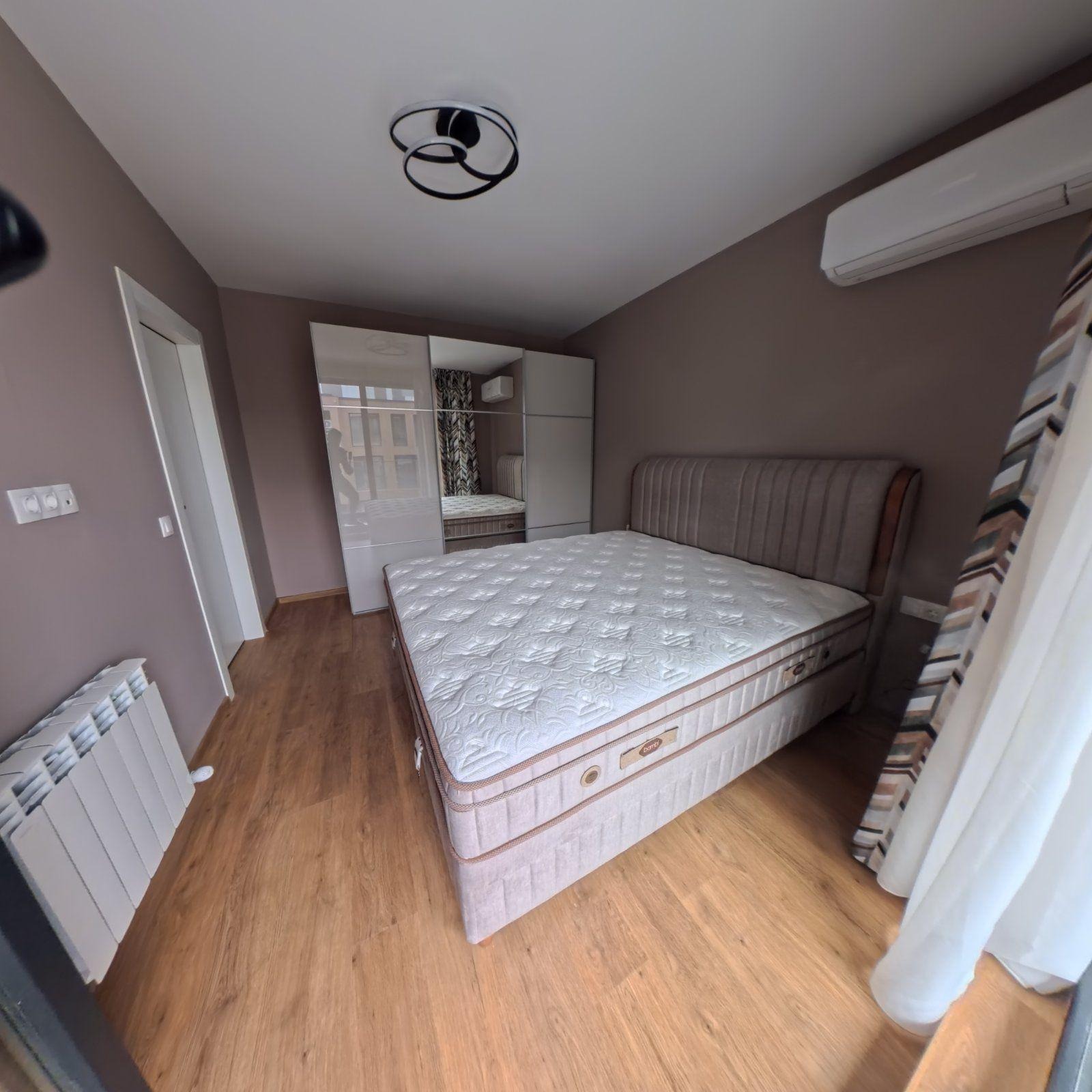 Апартаментът се предлага напълно обзаведен и оборудван. Отоплява се на газ и разполага с климатик и интернет окабеляване.
