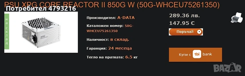 Захранване 850W GOLD XPG Core reactor II Бяло, снимка 1 - Захранвания и кутии - 54225041 Захранване 850W GOLD XPG Core reactor II Бяло, снимка 2 - Захранвания и кутии - 54225041 Захранване 850W GOLD XPG Core reactor II Бяло, снимка 3 - Захранвания и кутии - 54225041 Захранване 850W GOLD XPG Core reactor II Бяло, снимка 4 - Захранвания и кутии - 54225041 Захранване 850W GOLD XPG Core reactor II Бяло, снимка 5 - Захранвания и кутии - 54225041 Захранване 850W GOLD XPG Core reactor II Бяло, снимка 6 - Захранвания и кутии - 54225041 1/6