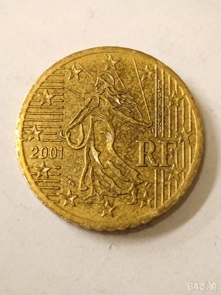 Това е монета от 50 евроцента от Франция, издадена през 2001 г.