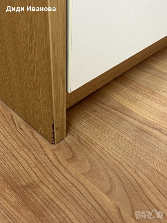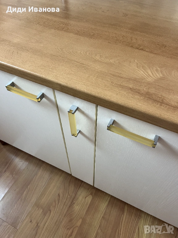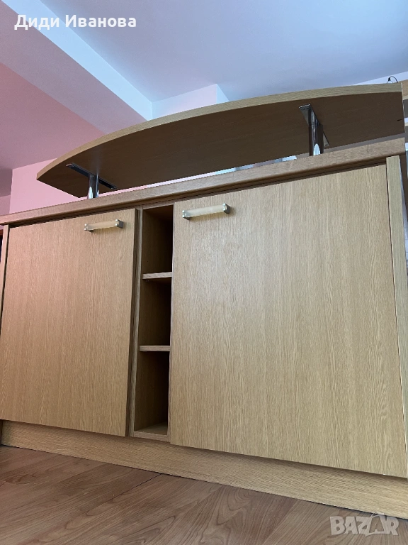 Забележка: в задните шкафове вътре и в мини хладилника има леки пожълтявания, които се почистват лесно с подходящ препарат. В краищата долу на крачетата има леки забележки.