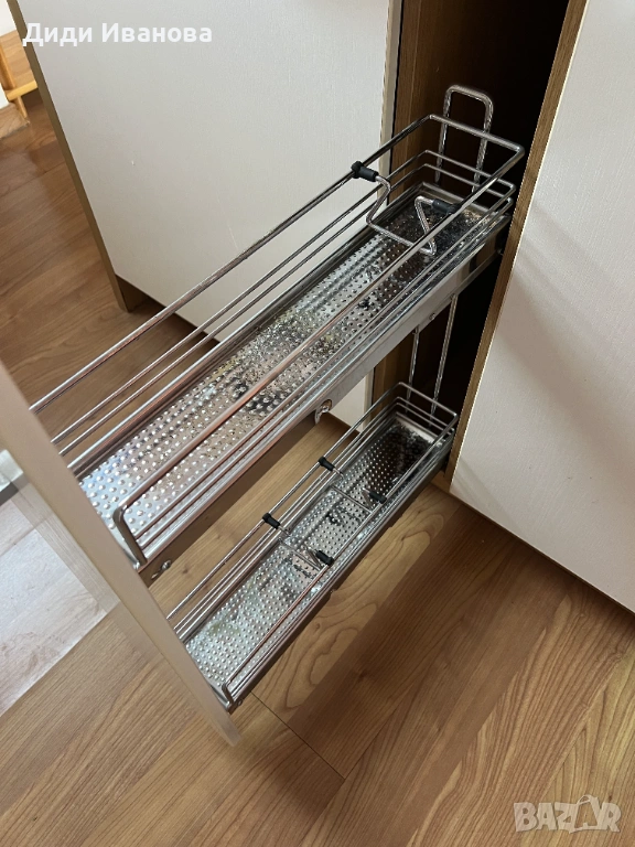 - тесен шкаф/органайзер (тип бутилник) – подходящ за съхранение на олио, зехтин и други бутилки