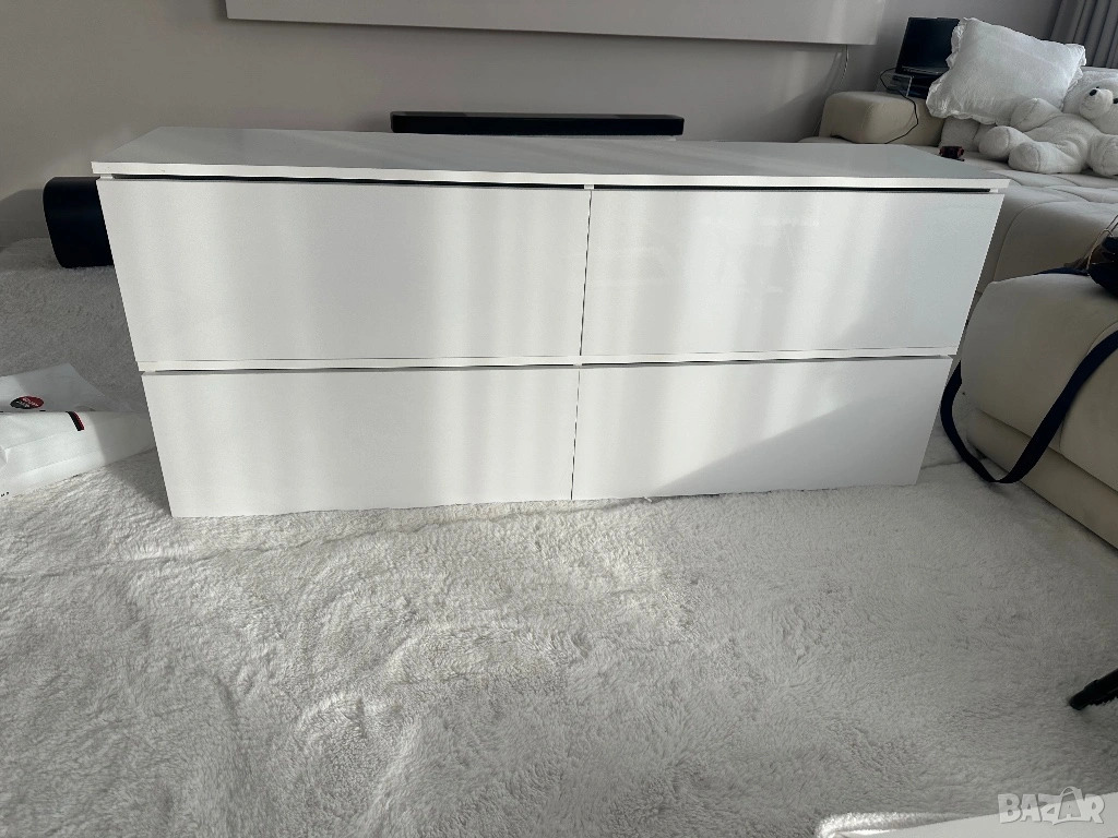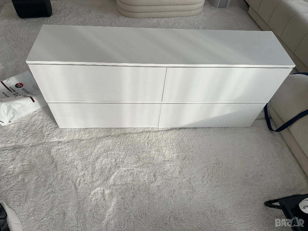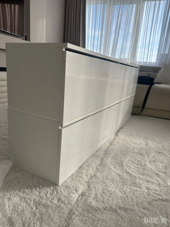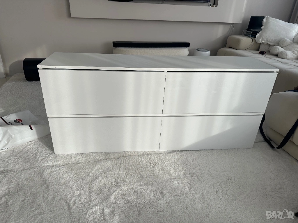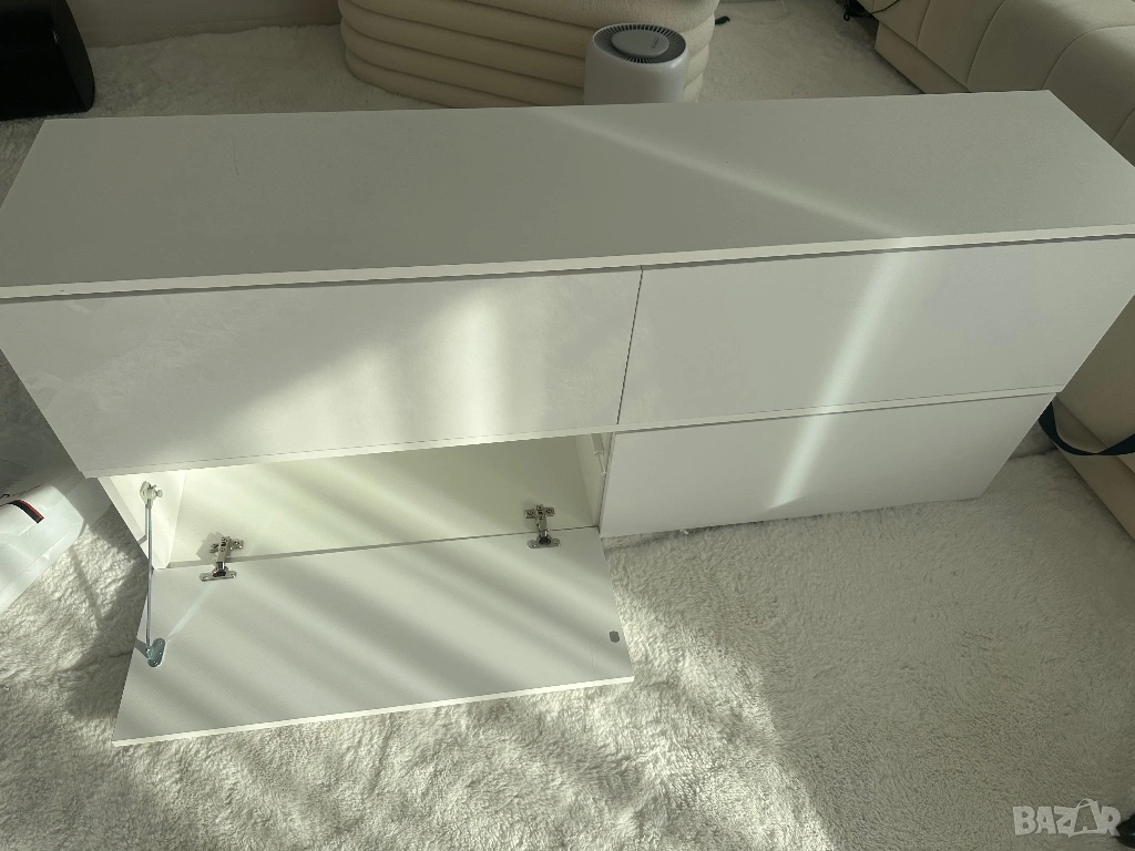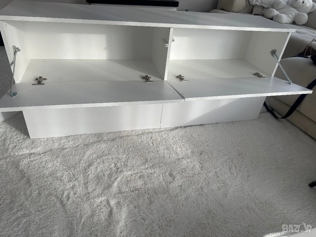 Тв шкаф , бял с бял лак, с пуш бутон → Обява 54225360