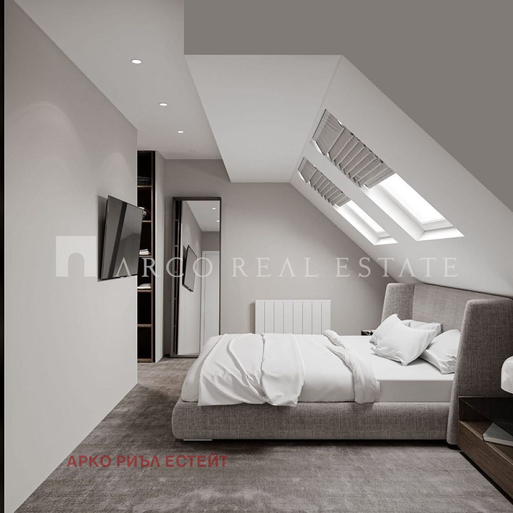 Разпределение: ниво 1: голяма дневна с кухненски бокс, спалня с гадеробна, кабинет, баня с тоялтна; ниво 2: спалня с баня с тоалетна и голяма югоизточна тераса с спиращи дъха панорами.