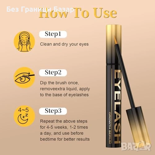 Нов Подхранващ Серум за мигли и вежди 5 мл с пептиди за растеж и плътност