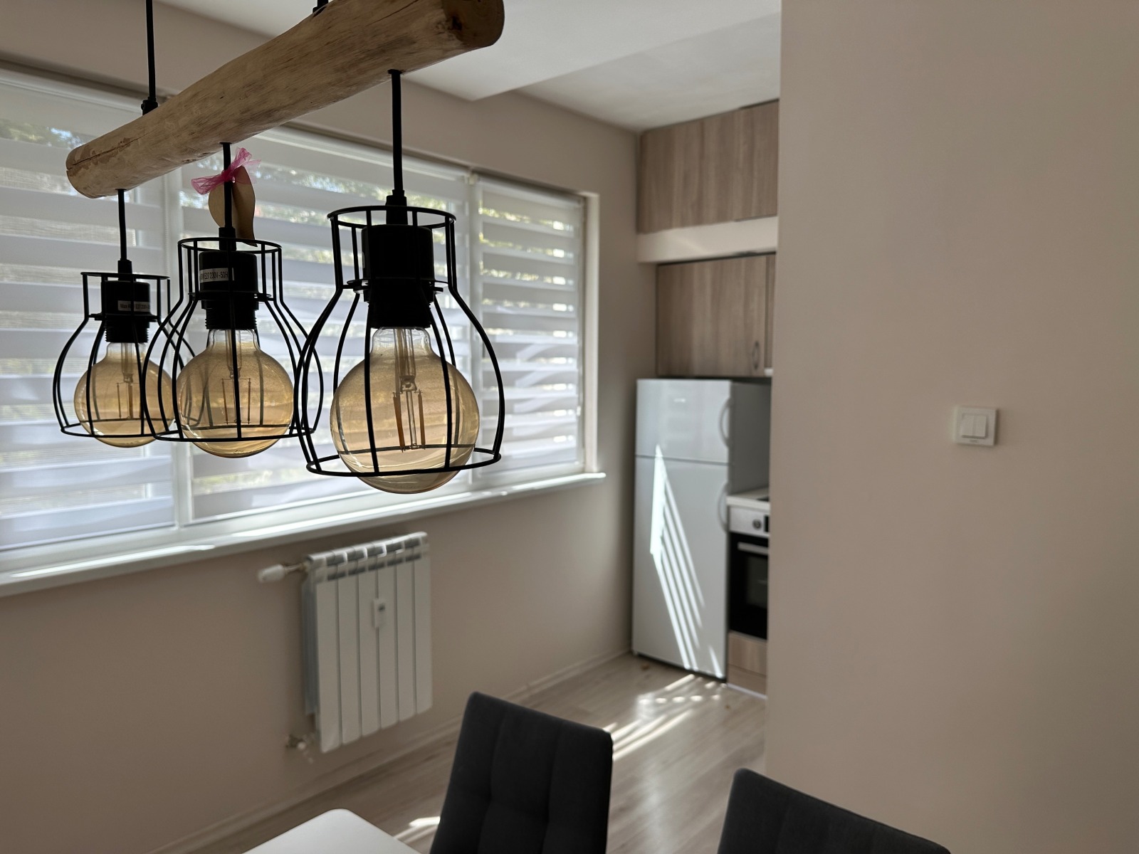 Андрима имоти отдава под наем просторен, светъл апартамент, след основен ремонт, напълно обзаведен. Жилището е изцяло с южно изложение, с ниски месечни разходи, състои се от хол, кухня с трапезария, самостоятелна спалня, баня с тоалетна и два балкона. Намира се на тихо и спокойно място, с множество детски площадки, магазини и спирки на обществен транспорт. Входа на блока е в отлично състояние, отоплението е на ТЕЦ, има и климатик в хола. За повече информация и огледи Петя Иванова 0889470700