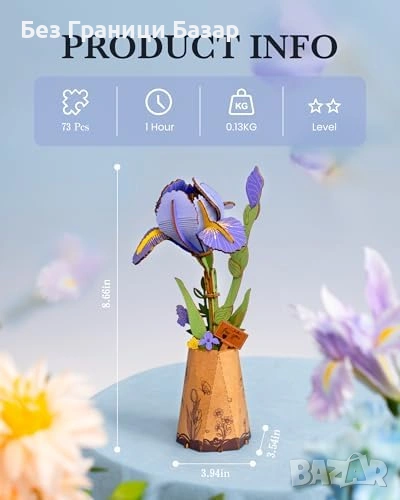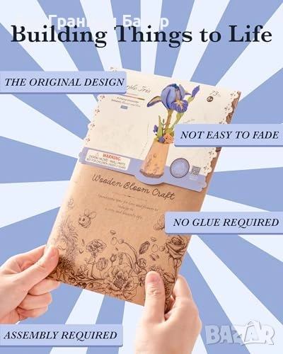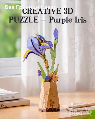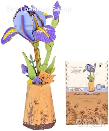 Нов Дървен 3D модел лилав ирис комплект за сглобяване подарък за възрастни декорация дом