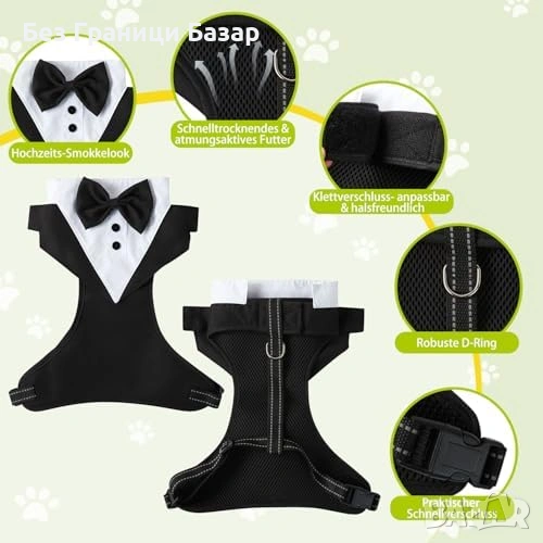 Нов Подплатен регулируем нагръдник смокинг с повод за малки кучета М размер