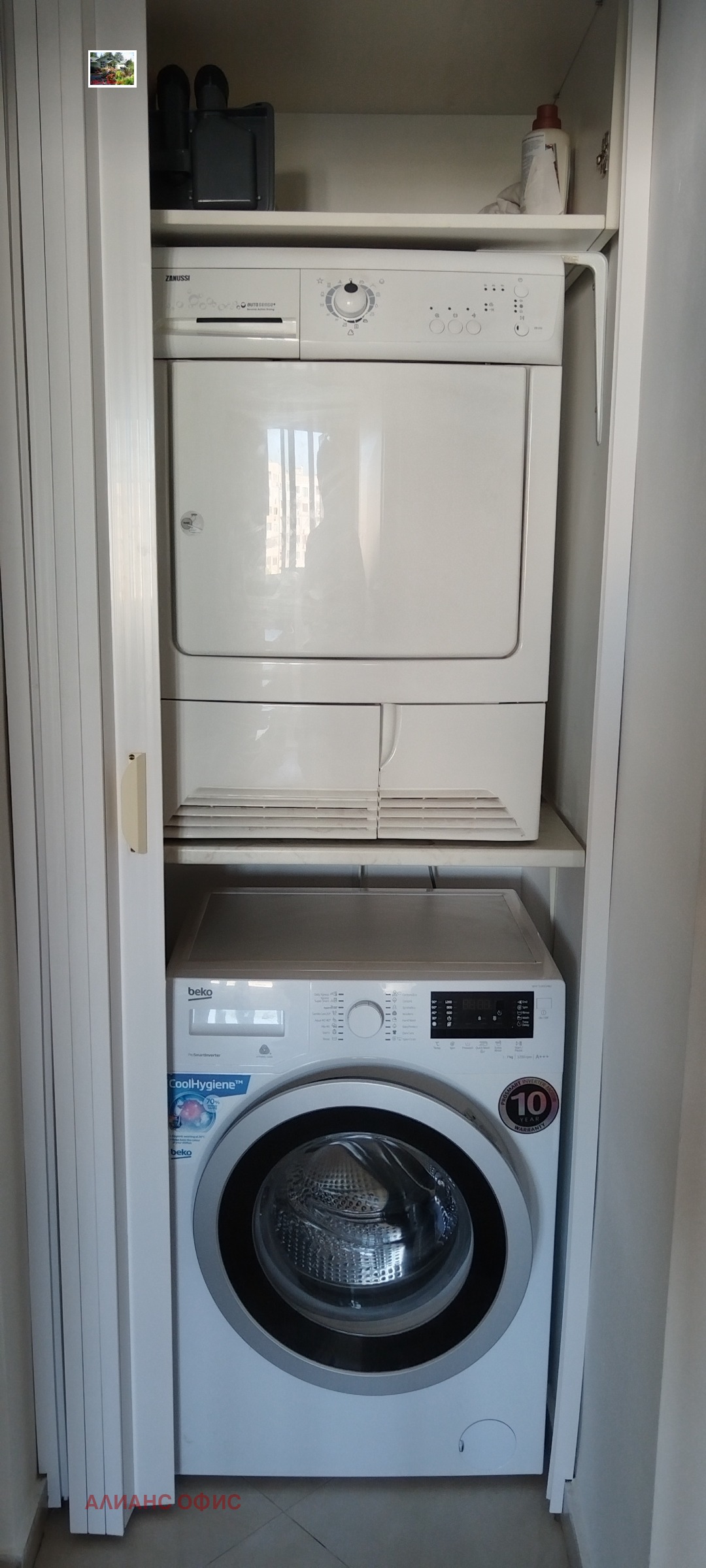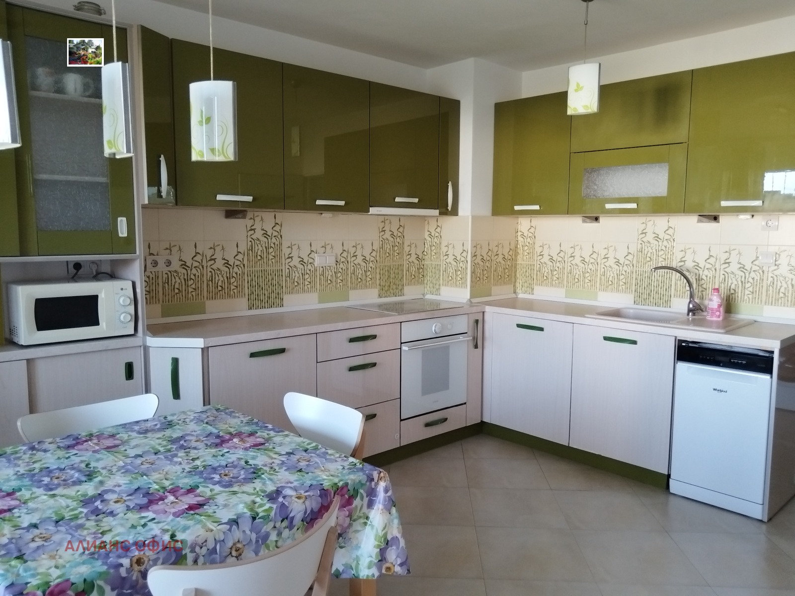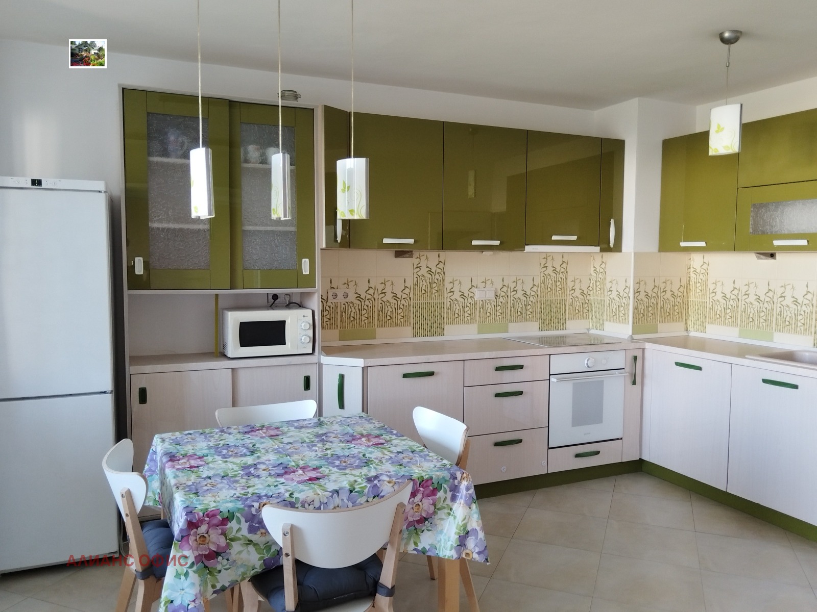 След освежителен ремонт, част от мебелите и уредите са чисто нови, а останалите са на няколко години, но са запазени и правени като за комфортно обитаване, а не да се отбие номера за наематели. Испански плочки на пода и едната баня, естествен паркет в хола, нов ламинат в останалите стаи, мазилка Ойкос в антрето, миеща се боя в кухня която е голяма с МДФ вратички, много място за съхранение. Акцент стена от декоративен 'камък' в хола. Нов матрак висок клас в спалнята, която е голяма - 180х200, нов диван в хола и други.