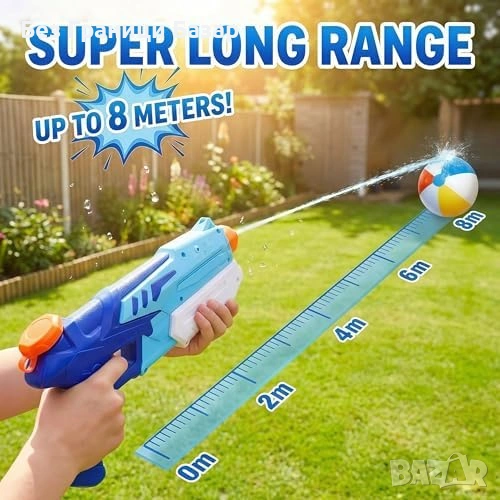 Нов комплект Водни пистолети 2 броя 300 мл далечен обхват за летни игри двор басейн плаж
