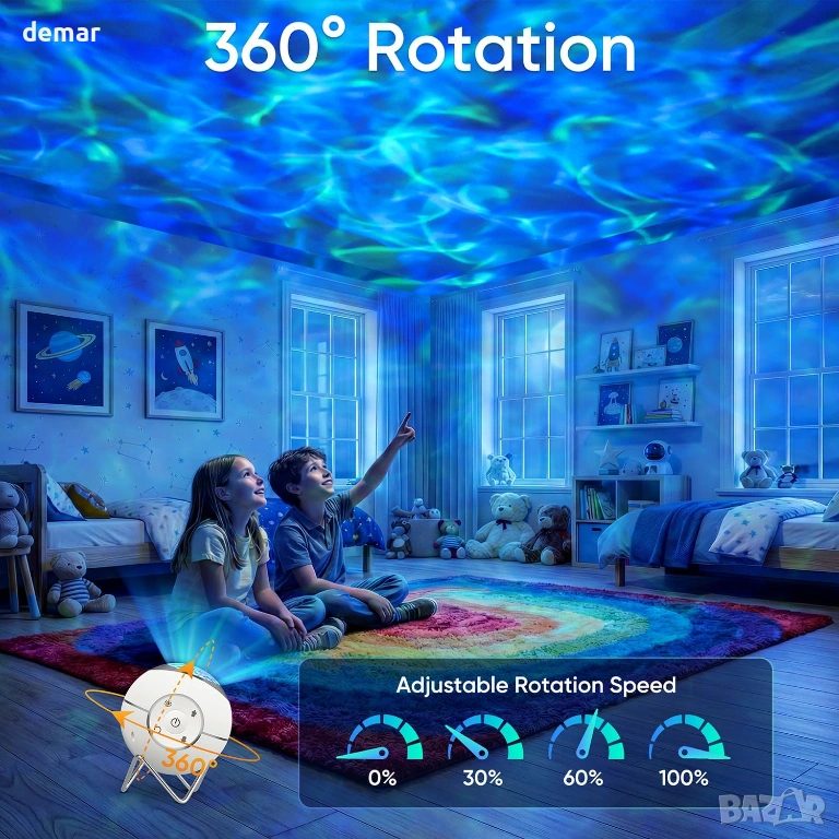 ibell Galaxy проектор с океански вълни, нощна светлина, дистанционно
