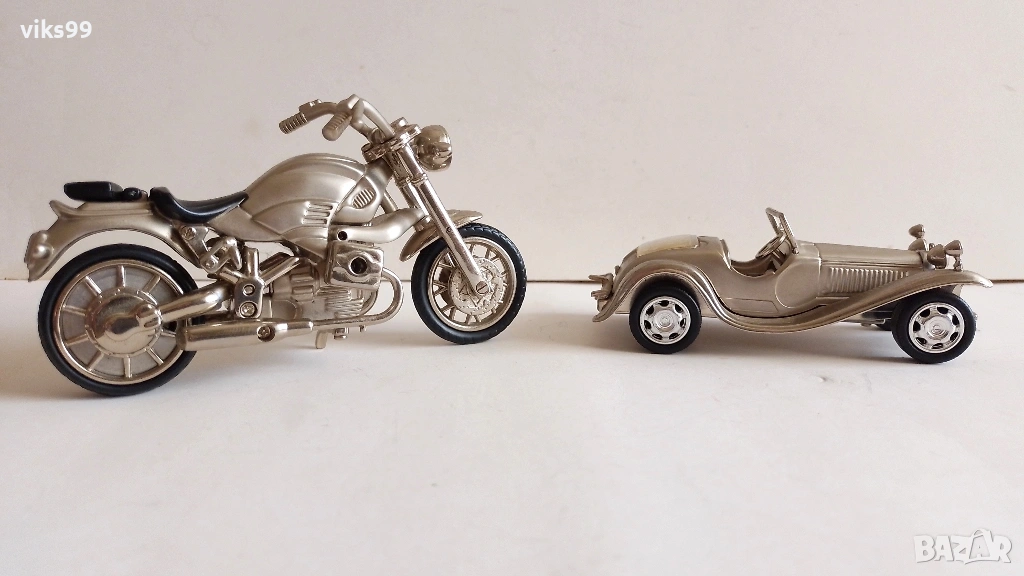 Масивни метални мотор и ретро количка - часовници. Мотора е 20 EURO, а количката е 15 EURO Двете заедно са 30 EURO Цените са без коментар. Моля не предлагайте по-ниски оферти! Всички мои пратки са с опции за преглед и тест преди плащане! МОЛЯ ВИЖТЕ И ДРУГИТЕ МИ ОБЯВИ.