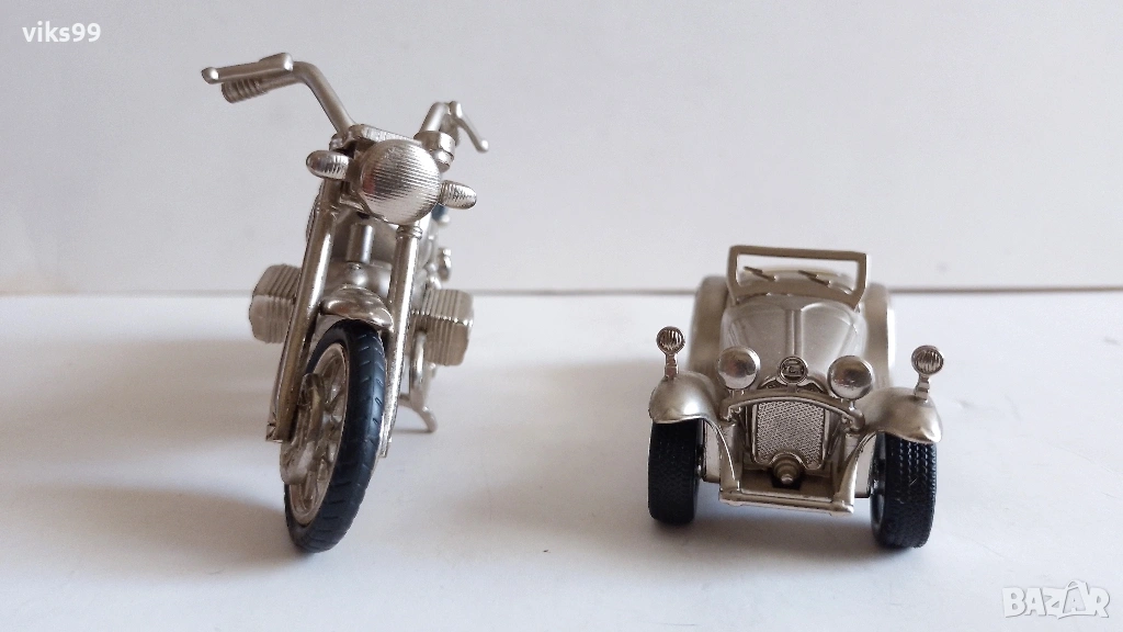 Метални мотор и ретро количка - часовници