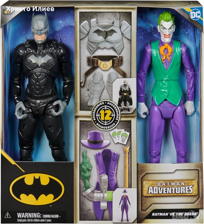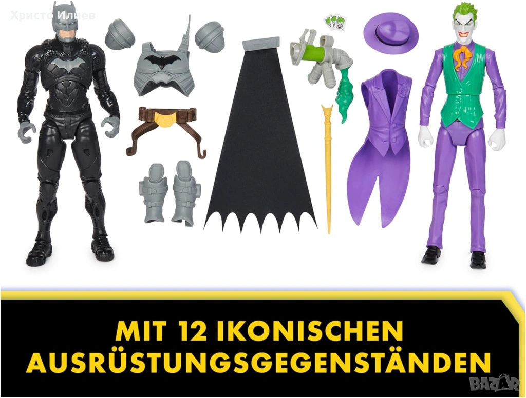 Spin Master DC ви представя приключенската битка на Батман срещу Жокера. Комплектът от 2 броя екшън фигурки на Батман и Жокера е идеален за деца и колекционери, които искат да се потопят във вълнуващия свят на героите от филма на Батман.
