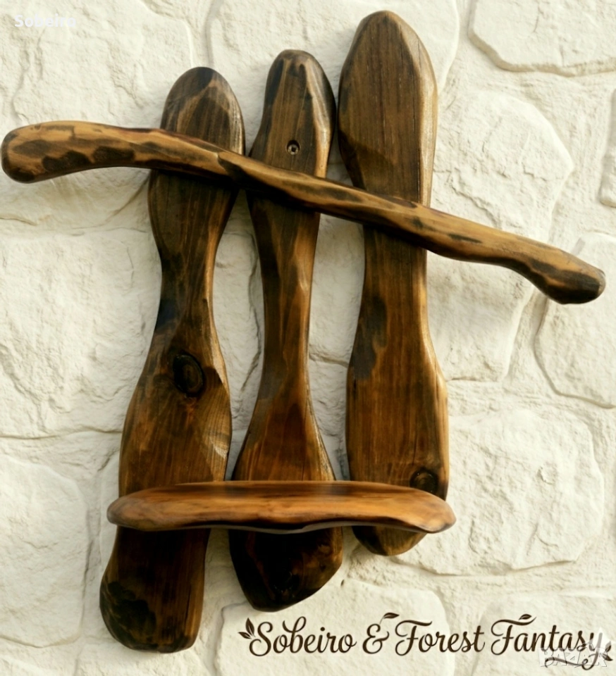 Тази уникална полица не е мебел, а пластика от #дърво, която пренася духа на гората директно във вашия #интериор. Изработена изцяло на ръка от масивна ела, тя съчетава грубата сила на природата с фината занаятчийска обработка.