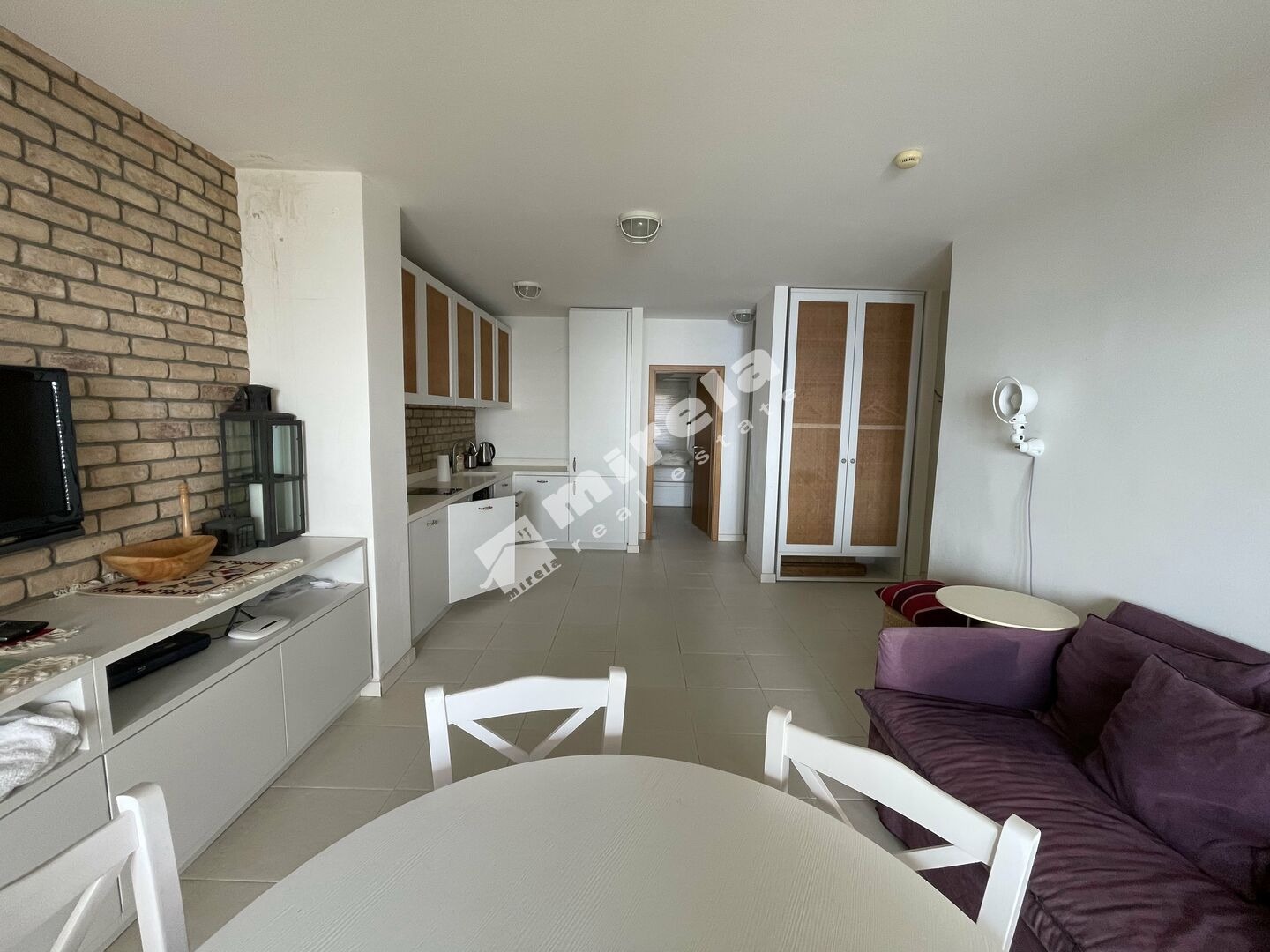 Първа линия с гледка море; Имотът има жилищен статут; Има надземно паркомясто; Сградата има асансьор; Продава се с обзавеждане, което подлежи на уточнение; Има физическа охрана; ЕТАП НА СТРОИТЕЛСТВО: разрешение за ползване (Акт 16); ОТОПЛЕНИЕ: ел. нагреватели/климатик; Има 3 или повече балкона/тераси; Ремонтиран; Има такса поддръжка; Преходен; Целогодишно ползване; ВИД СТРОИТЕЛСТВО: тухла; ГОДИНА НА СТРОИТЕЛСТВО: 2010 г.; ИЗЛОЖЕНИЕ: изток; СПАЛНИ: 2; БАНИ: 2; ДОГРАМА: PVC
