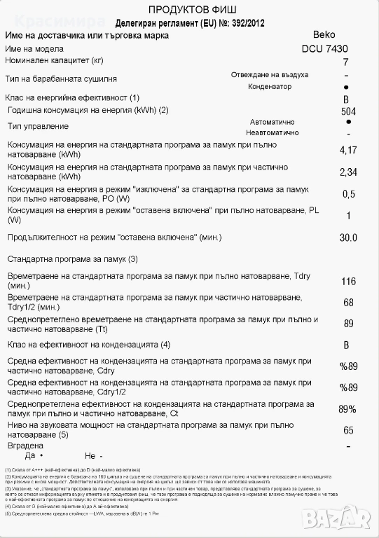 Сушилня BEKO 7 kg термопомпа