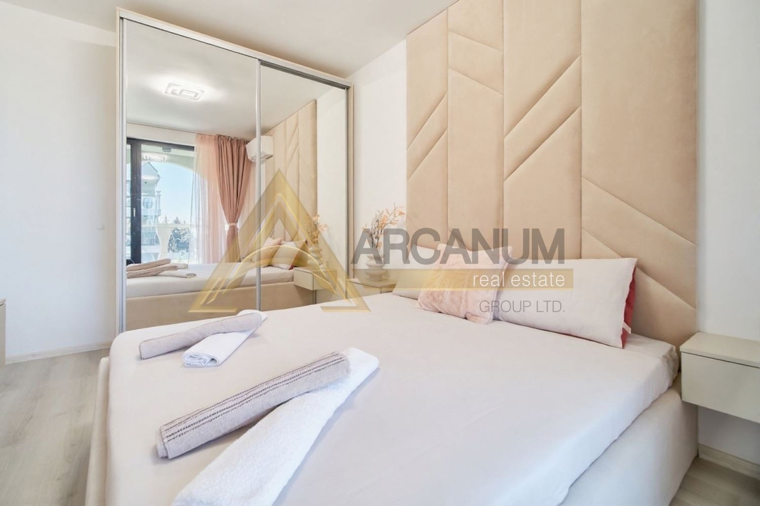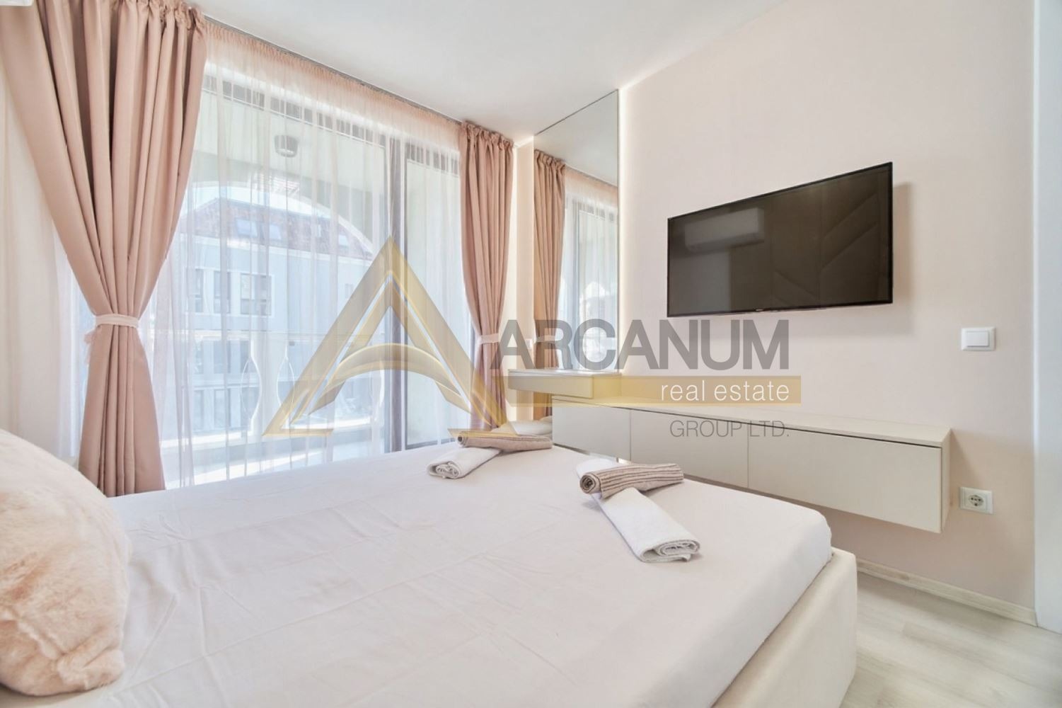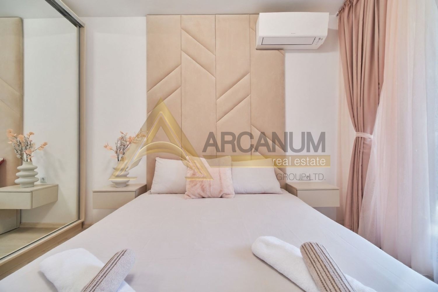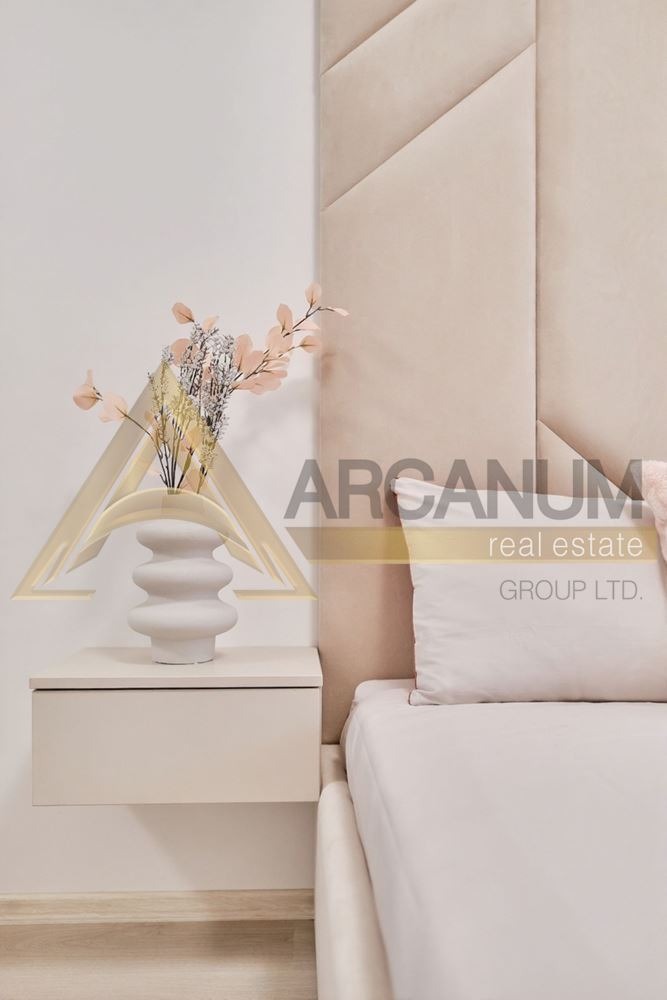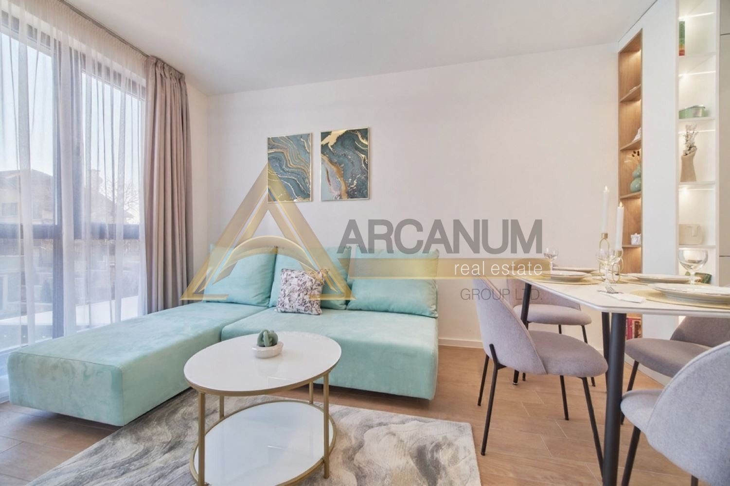 Апартаментът е стилно обзаведен с модерна визия, качествени мебели и напълно оборудван, готов за директно нанасяне без нужда от допълнителни разходи.
