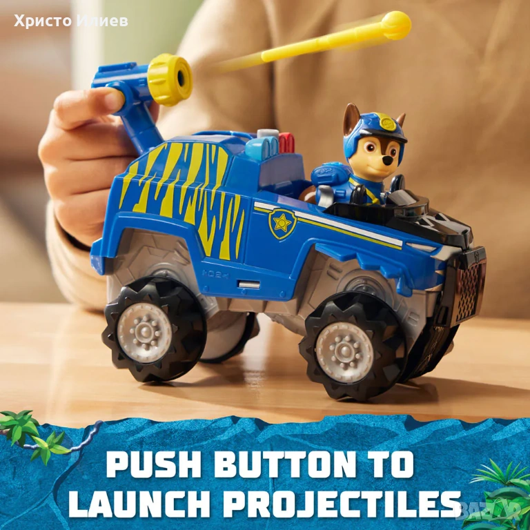 Пригответе се за вълнуващи спасителни приключения с Chase, в неговото спасително превозно средство Jungle Pups с тигрова тематика! Превозното средство на Чейс разполага с вълнуваща трансформация в режим на спасяване чрез спускане на предната решетка, тигрови зъби на превозното му средство, след което натискане на бутона за активиране, за да се вдигне изстрелвачът на снаряд с тигрова опашка. След това, когато дойде време да се отправите към следващото си спасяване, заредете снаряда в изстрелващото устройство и натиснете бутона на опашката, за да изстреляте снарядите си и да премахнете всички препятствия! Насладете се на безкрайни PAWsome приключения с Chase и неговия Jungle Pups Tiger Vehicle!