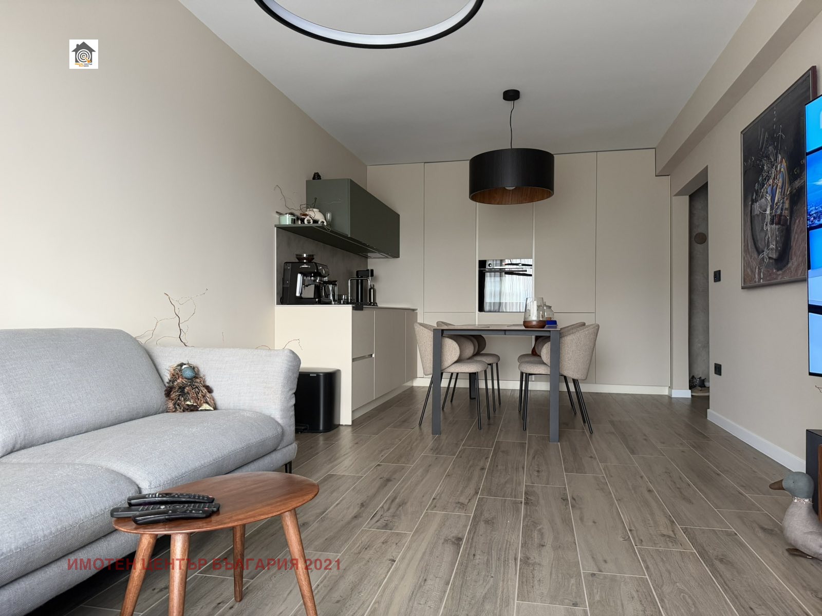 Представяме на Вашето внимание обзаведен тристаен апартамент с АКТ 16 със следното разпределение:входно антре,дневен тракт с кухненски бокс,две спални,дрешник,две санитарни помещение и дворна тераса.Нивото му е наземно,но се пада на около 1,8 м2 над нивото на улицата,понеже сградата е на денивелация.Изложението на жилището е югоизточно,което го прави изключително светло и топло през целия ден. Застроената площ на жилището е 80м2, с общите части е 90м2, а отделно от нея имотът разполага с 30м2 дворна тераса с излаз от всяко едно помещение.Към него има опция за закупуване на паркомясто на допълнителна цена.Апартаментът е оборудван с висок клас мебели,електроуреди и разполага със следните подобрения: инсталирано подово отопление на газ с отделни термостати с цел регулиране на температурата в отделните помещения, охлаждане предвидено чрез климатици разположени във всички стаи.Дворната тераса е оборудвана с тента с дистанционно управление, чувствителност за вятър, естествен декинг, озеленяване и мека мебел,което дава възможност за целогодишното и използване.Локацията на жилището е отлична, в непосредствена близост до главни пътни артерии,чисто нова детска градина,спирки на градския транспорт и хипермаркет 'Кауфланд'. Поради отличното състояние и локация имотът е подходящ както жилищни нужди, така и за инвестиционни цели (отдаване на дългосрочен наем или нощувки) с гарантирана месечна доходност. Районът е изключително бързоразвиващ с изградена нова инфрастктура,което го прави изключително търсен и предпочитан. За повече информация и насрочване на огледи,моля обадете се на посочения телефон.Отговорен брокер за имота-Велислав Шопов.