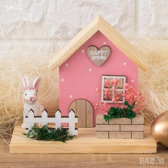 Великденска настолна дървена декоративна къща, 15x10x13 см_1248349