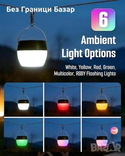 6 режима на светлина: бяла, топла, червена, зелена, многоцветна и мигаща