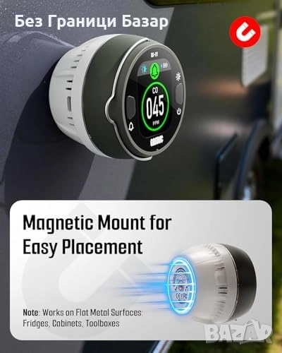 Нов Детектор за въглероден оксид CO аларма с магнитно закрепване и презареждаема батерия