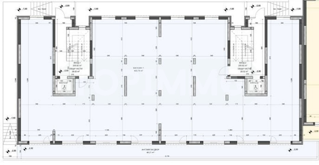 Помещението е с правилни форми, с два санитарни възела и два входа.