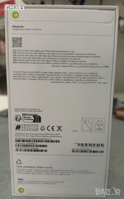 Нов Apple iPhone 17 Air 256GB Gold 2 год. Гаранция! → Обява 54226820
