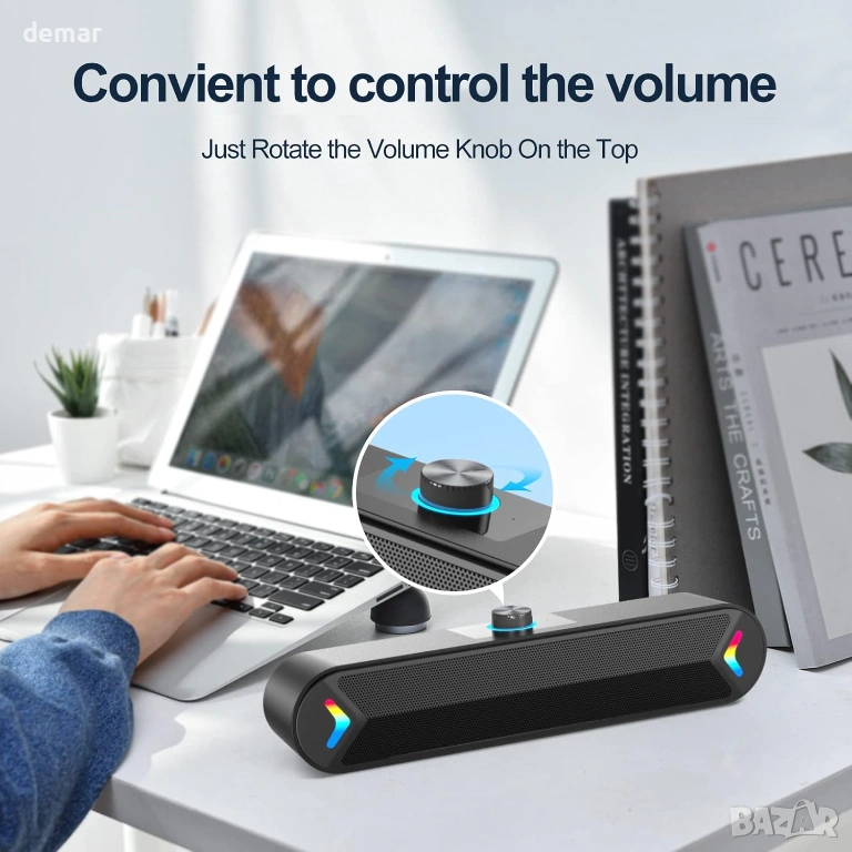 Компактни компютърни високоговорители с широка съвместимост за устройства с 3,5 мм AUX изход, включително лаптопи и таблети, позволяващи и свързване на слушалки за лична употреба. Оборудвани с двойни 5W говорители, те осигуряват ясен, балансиран стерео звук с минимален шум, подходящи за игри, музика и филми. Удобно разположеният бутон за сила на звука отгоре осигурява бързи и лесни настройки, а вграденото цветно осветление добавя атмосфера и може да се включва или изключва по желание. Проектирани за простота, те предлагат plug-and-play функционалност без нужда от драйвери и включват 1,2 м кабел за гъвкава настройка без забавяне на звука.