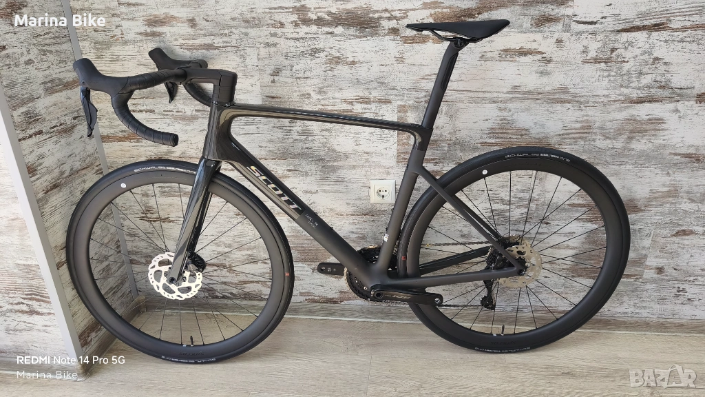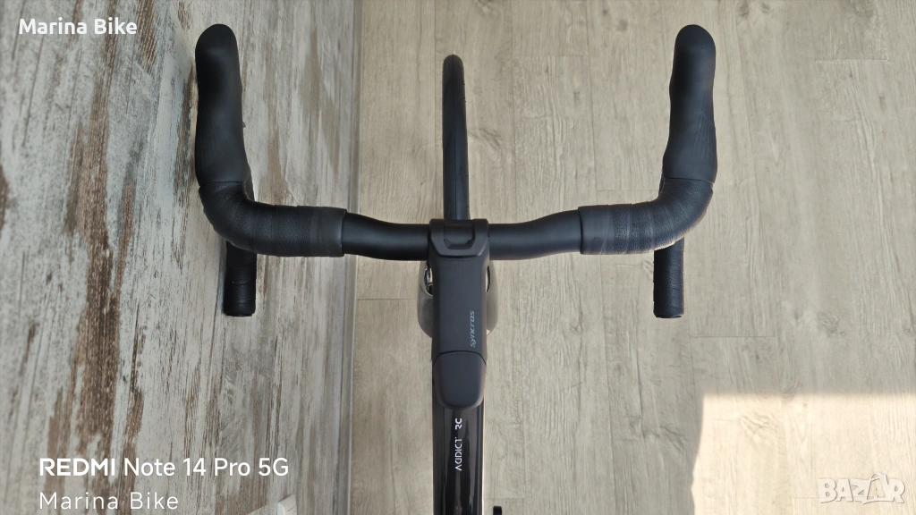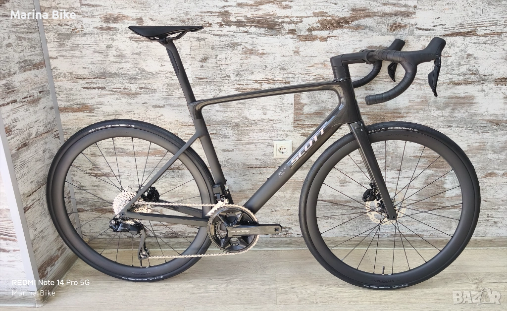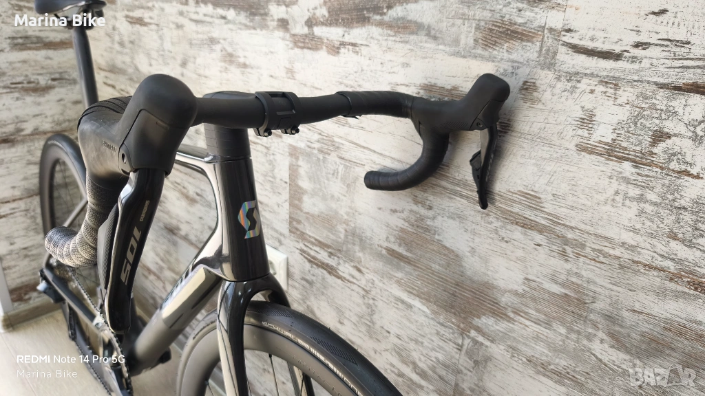 Използван няколко пъти като Demo велосипед в магазина, без никакво износване на компонентите, в изцяло фабрична сглобка. Оборудван с пълен електронен монтаж 2х12 скорости Shimano 105 R7150 Di2, карбонови капли Syncros Capital 1.0 и компоненти Syncros.