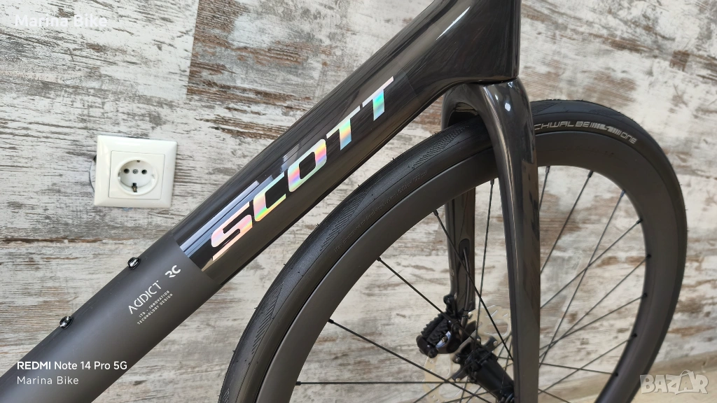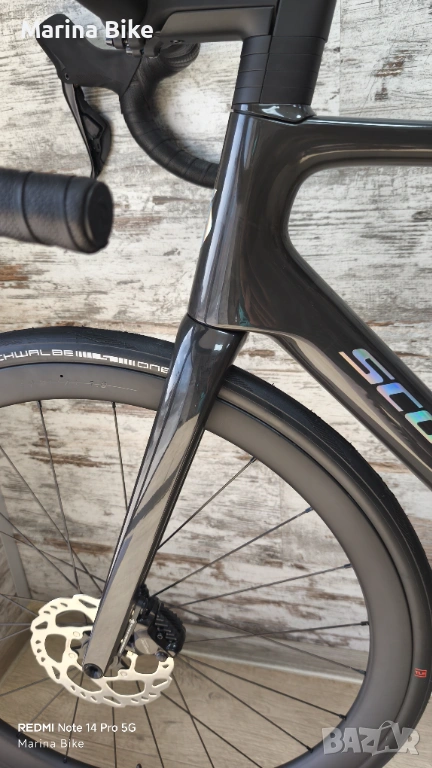 1. Карбонова ( Addict RC HMX Carbon ) оригинална шосейна рамка Scott Addict RC30 Disc, модел 2025 година, размер L, с UCI лиценз, с пълна интеграция на маркучите и броните, с основни параметри: