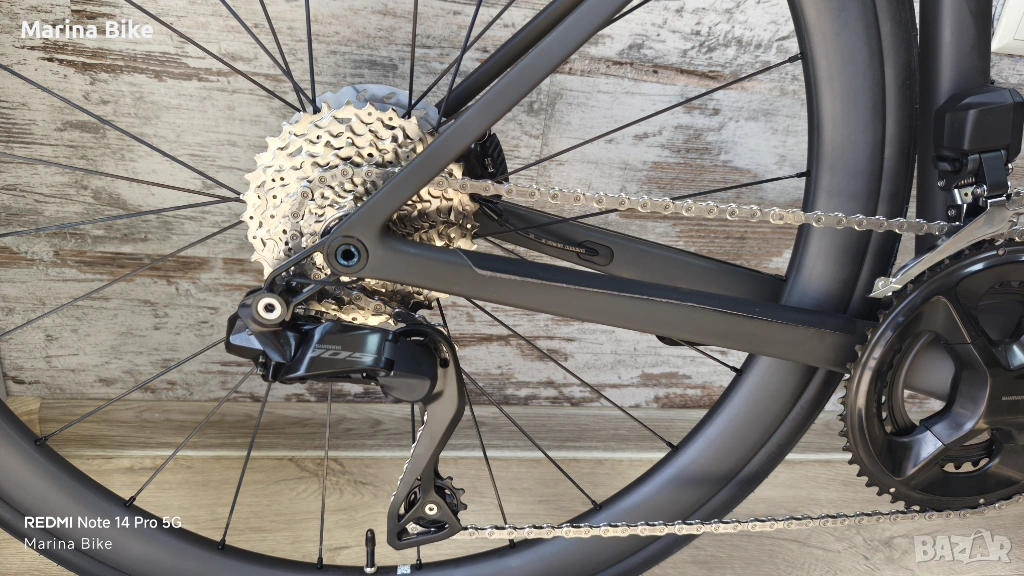 6. Заден дерайльор - Shimano 105 R7150 Di2, дълго рамо ( до 36 зъба на касетата ) ;