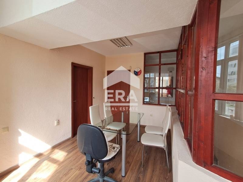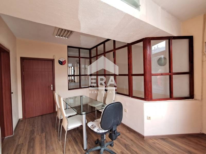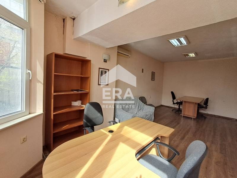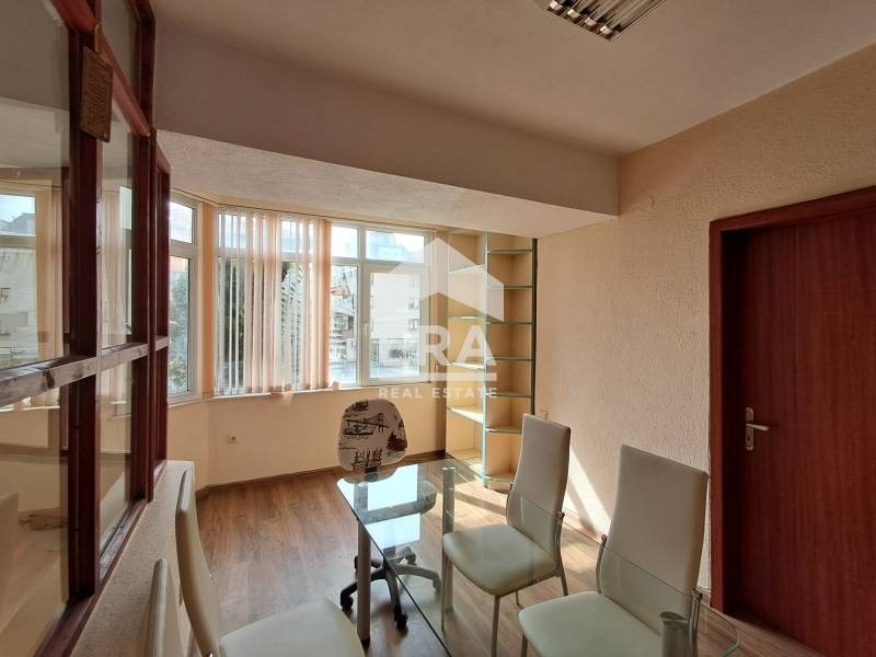 ЕРА Варна Тренд предлага под наем обзаведен офис, с две работни помещения и открито паркомясто, на оживена улица, в близост до Стоматологията. Имотът е със застроена площ 50 кв.м, разположен на първи етаж над партер, със самостоятелен вход. Състои се от коридор, две работни зали, мокро помещение и санитарен възел. Изложението е югоизток. Има добра възможност за поставяне на реклами, с видимост от оживената улица.