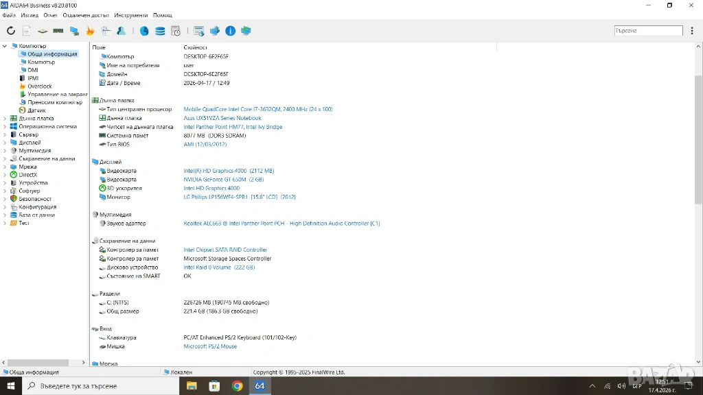 Хард Диск: 256GB SSD SATA III (2 x 128GB SSD SanDisk, RAID0)