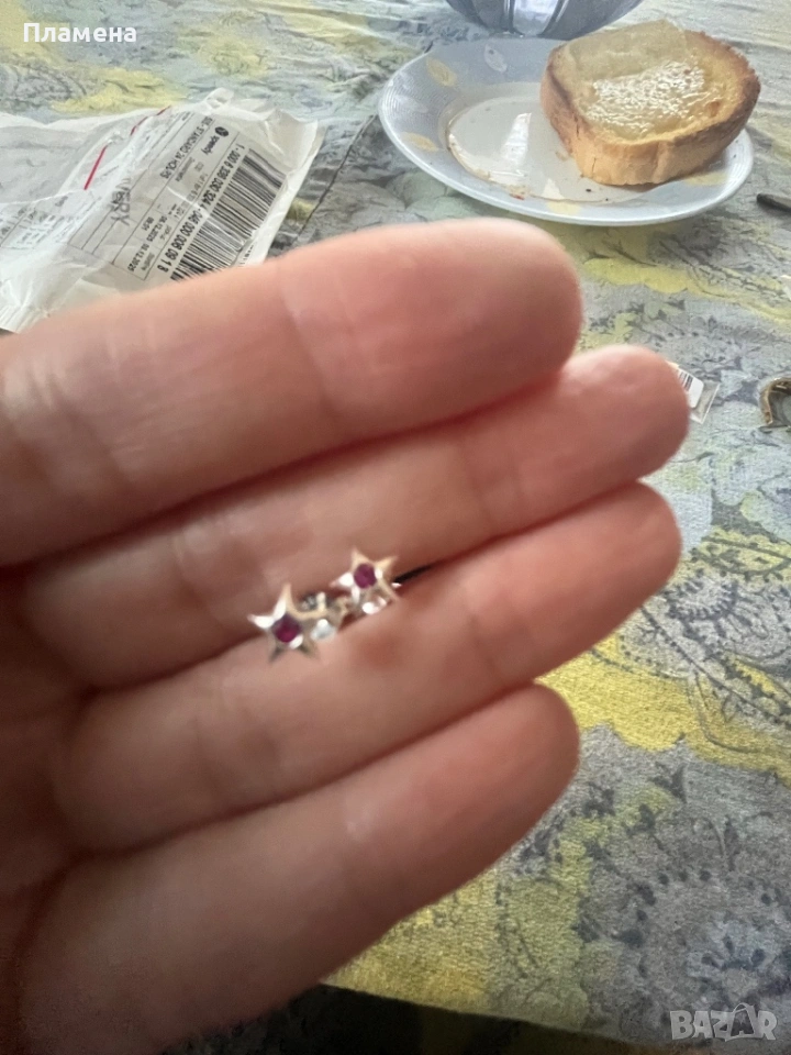 Нежни сребърни обеци звезди с цирконии проба 925 → Обява 54226923