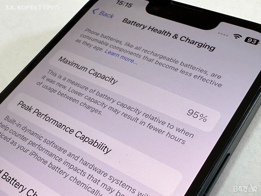 Телефонът е в много добро състояние, използван е внимателно и винаги с кейс. Батерията е на 95% здраве. Работи със всички оператори.