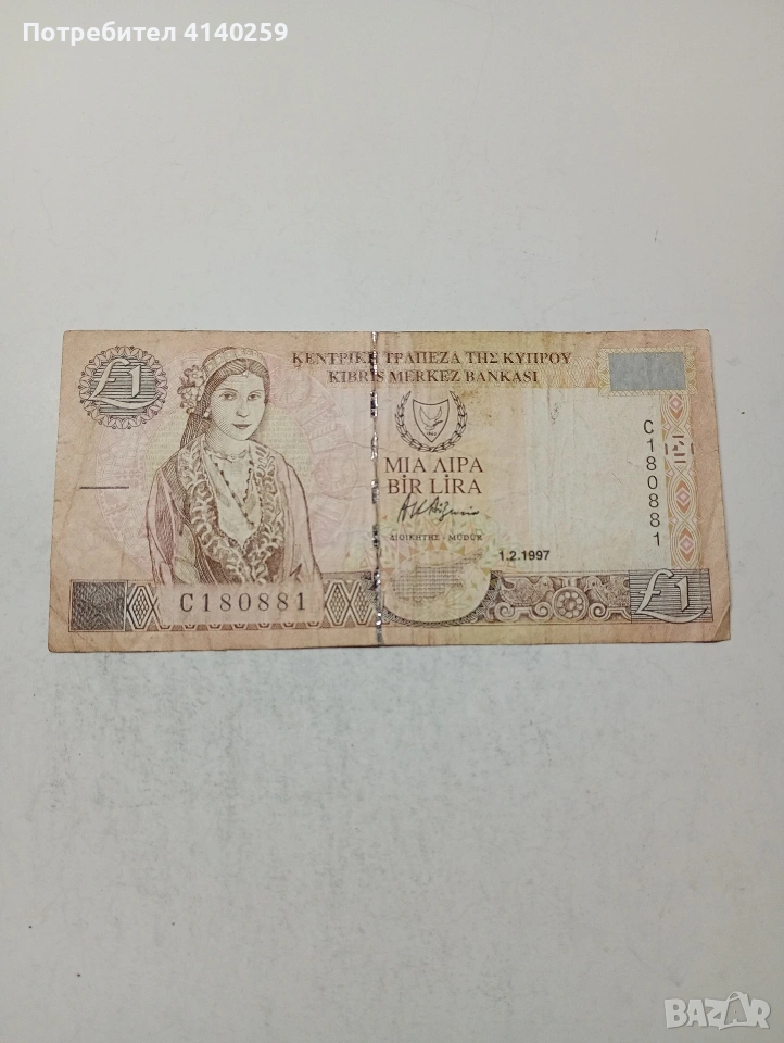 КИПЪР БАНКНОТА 1 ЛИРА 1997 Г СЪСТОЯНИЕ ВИДИМО ПОЛУЧАВАТЕ СНИМАНАТА БАНКНОТА РАЗГЛЕДАЙТЕ ДРУГИТЕ МИ ОБЯВИ ДА КОМБИНИРАТЕ ДОСТАВКА ЕКОНТ ЗА ВАРНА ЛИЧНО