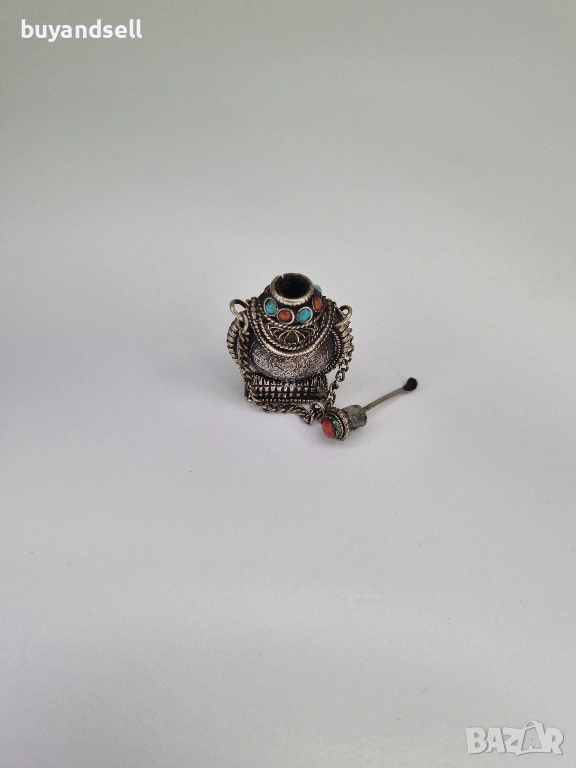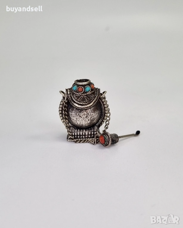 🖇изящна сребърна муска (съд за парфюмно масло) от кралство Бутан - 4 см.