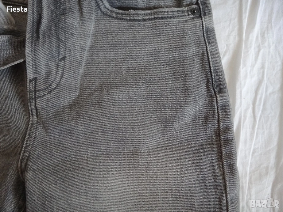 Къс панталон от плътен памучен деним с пет джоба, стандартна средновисока талия и свободни, леко стесняващи се крачоли с дължина над коляното. Закопчава се с цип и копче. Гайки за колан. Избелял ефект. Може да се носи и с обърнати подгъви (подгънати крачоли).