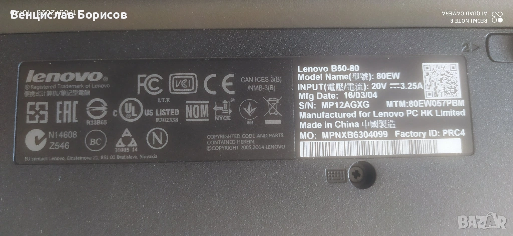 Здравейте, продава употребяван лаптоп Леново Lenovo B50-80.