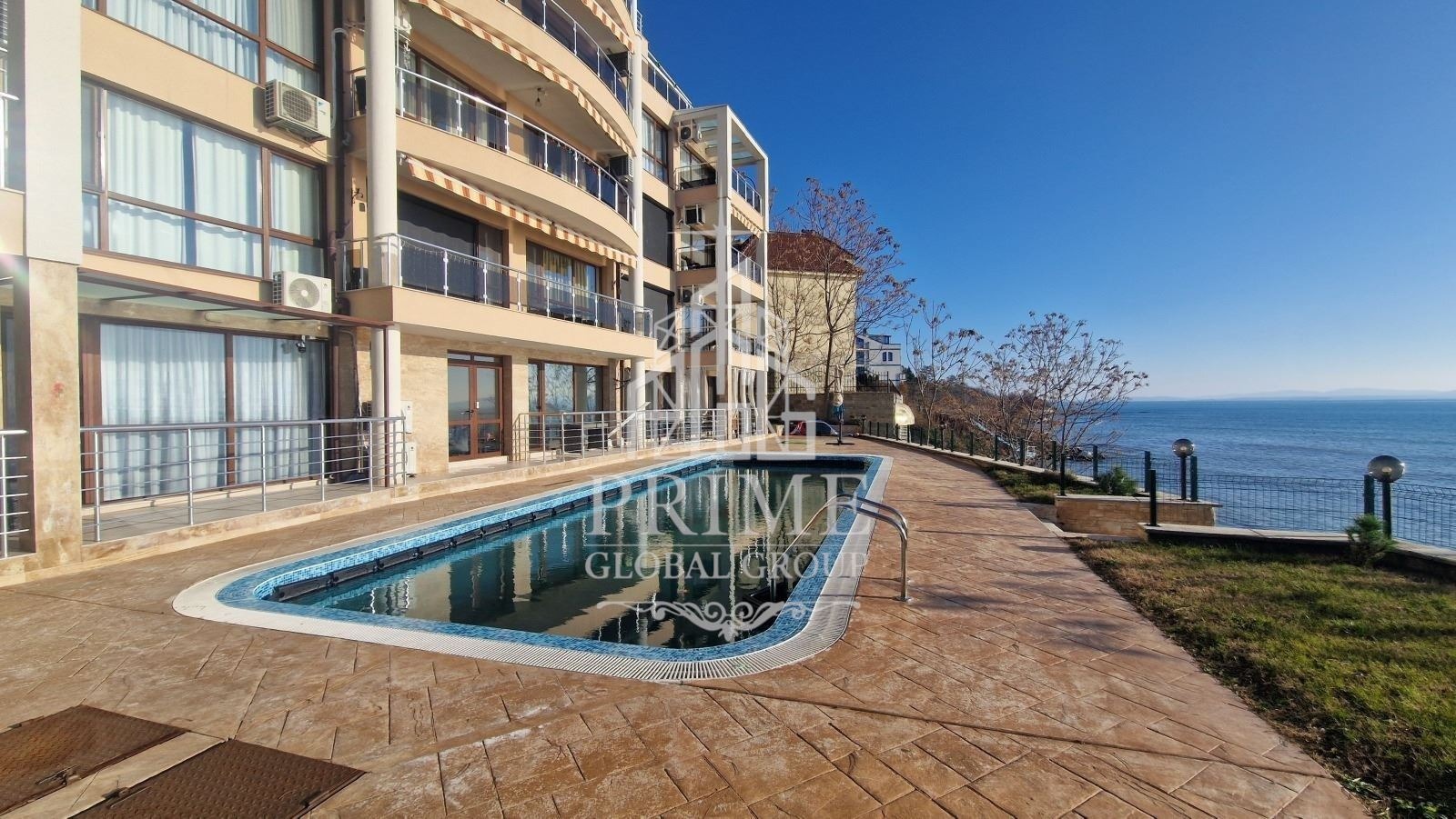 Имоти Прайм Глобал Груп предлага за продажба просторен тристаен апартамент, разположен на първа линия море в нова, модерна пететажна сграда с ексклузивен достъп до малък и уединен плаж.