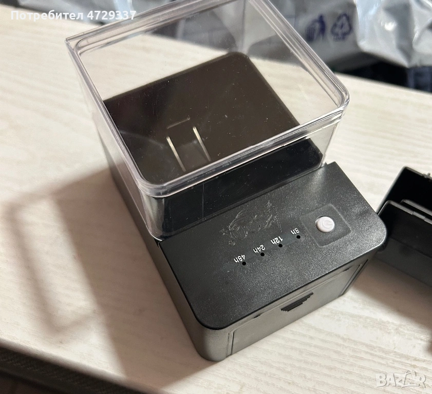 Продавам чисто нова автоматична хранилка за аквариумни рибки AQQA AQ130. Идеалното решение за вашите любимци, когато сте на работа, на почивка или просто искате да автоматизирате ежедневната грижа за аквариума.