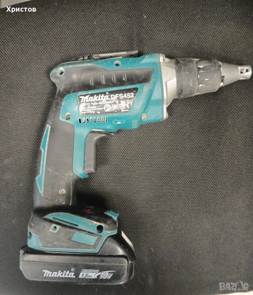 Цена 150 € Акумулаторен винтоверт за гипсокартон Makita DFS452Z. Технология: Разполага с безчетков двигател за по-дълъг живот и технология „Push & Drive“, при която моторът се стартира само при натиск върху винта. гипсокартон Производителност: Максимални обороти от 4000 min⁻¹ и регулируема дълбочина на завиване. Захранване: Работи с 18V Li-Ion LXT батерия.