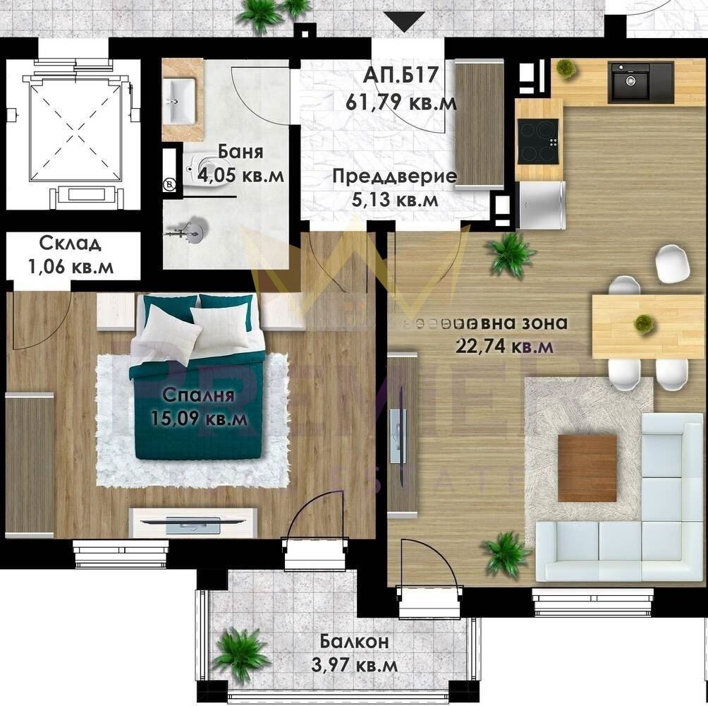 Имоти Премиер предлага двустаен апартамент в новострояща се сграда пред Акт 15 в Коматево, гр. Пловдив.
