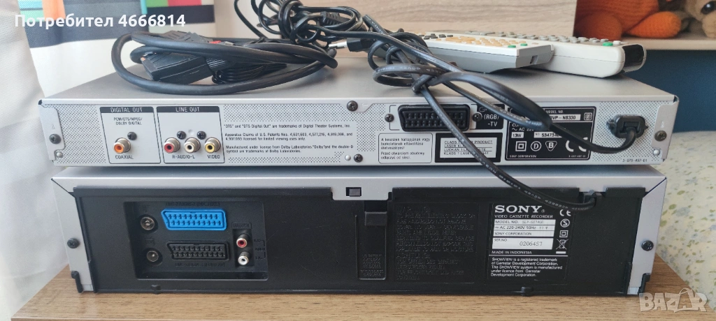 SONY видео VHS модел SLV-SE740 u SONY DVD модел DVP-NS330 работещи безупречно в прекрасно състояние в комплект с оригиналните дистанционни и кабели за включване.Цената е за двете.