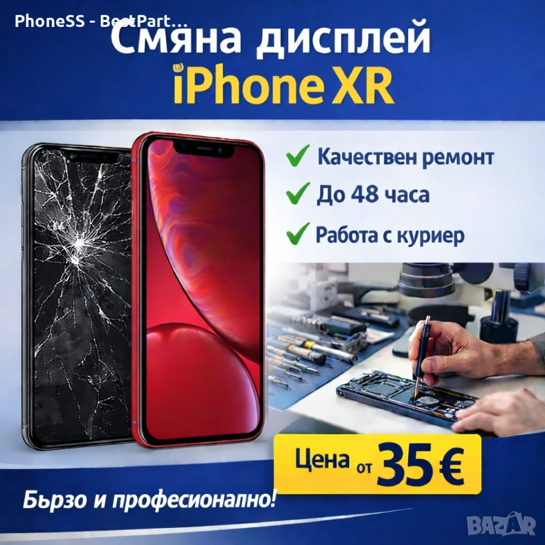 Предлагаме смяна на дисплей за iPhone XR на достъпна цена, с бързо обслужване и гарантирано качество.