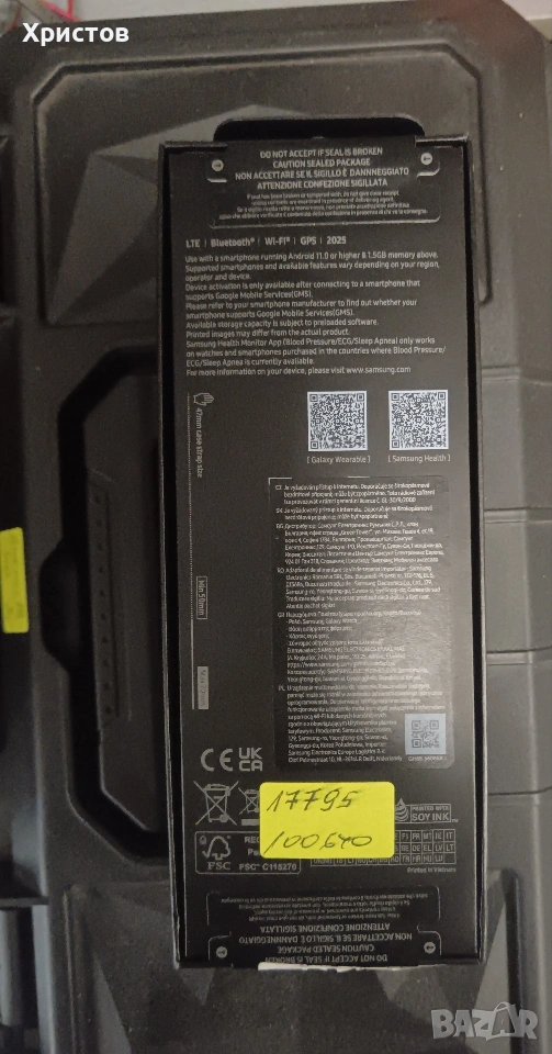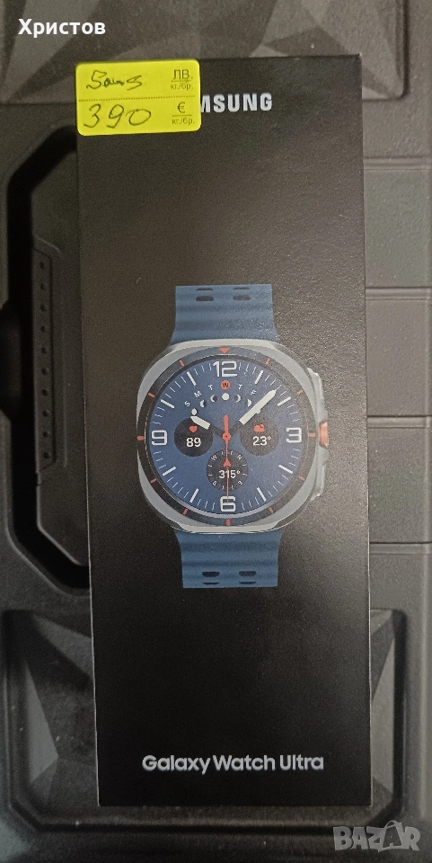 Нов Цена 390 € Смарт часовник Samsung Galaxy Watch Ultra (модел 2024/2025), който се отличава с титаниева рамка, издръжлива батерия и подобрени сензори за здраве. Дисплей: 1.5-инчов с резолюция 480×480480 cross 480 480×480 пиксела. Хардуер: Процесор Exynos W1000, 2GB RAM и 32GB/64GB вградена памет. Батерия: 590mAh с поддръжка на 10W зареждане. Функции: Водоустойчивост 10 ATM, LTE свързаност и двойна честота на GPS.