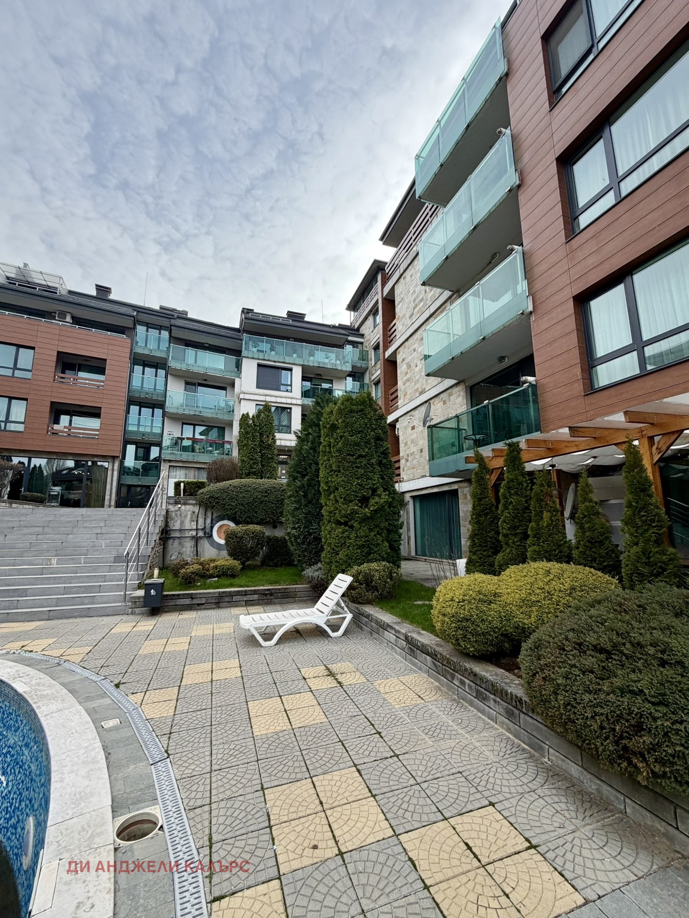Жилището е с гледка към басейна на комплекса, който разполага още с добре поддържани общи части и детска площадка идеално за семейства и хора, търсещи спокойствие и сигурност.