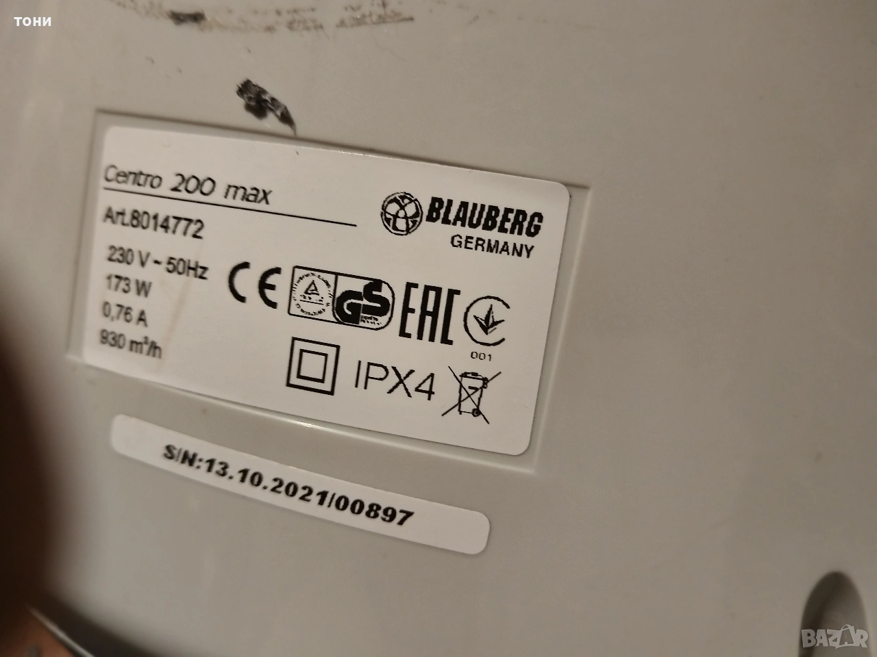 вентилатор 175 вата → Обява 54228299